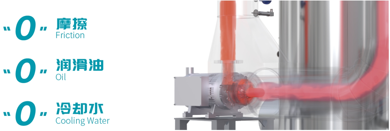 蒸汽压缩机是热压式蒸馏水机的核心部件,仲博CBIN99热压式蒸馏水机使用的蒸汽压缩机是与旗下公司乐恒节能自主研发的离心式高速直驱蒸汽压缩机,采用了先进的磁悬浮直驱技术,电机转子与磁浮轴承之间不接触,只受空气阻力损失,设计工况范围气动效率稳定在80%以上。由于没有润滑系统,所以对使用环境可达零油雾污染,体积小,便于维护。